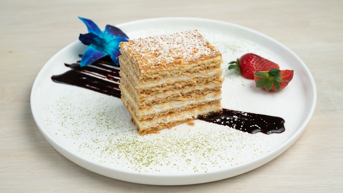 For dessert, don’t miss out on the traditional Ukrainian honey cake. It’s a multi-layered cake that’s both sweet and rich, with a light texture that pairs wonderfully with a cup of tea or coffee. It's the perfect way to end a delicious meal and gives you a true taste of Ukrainian baking.
