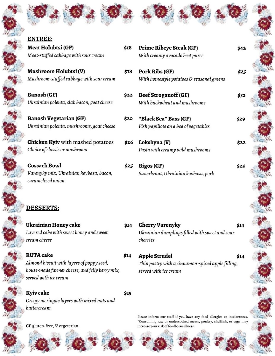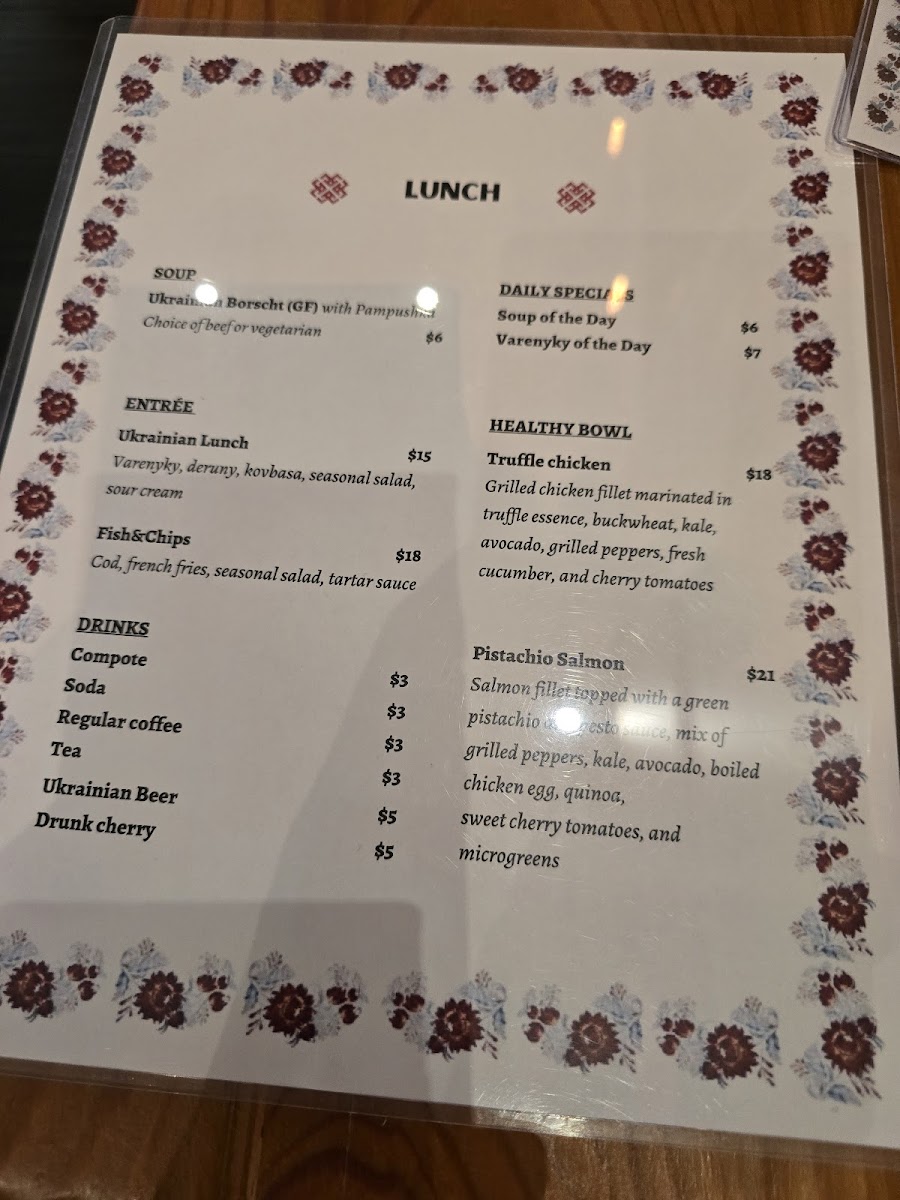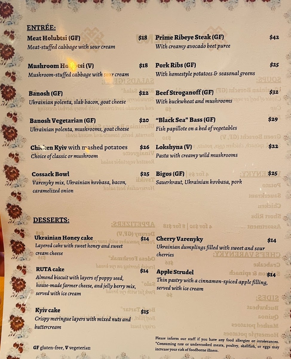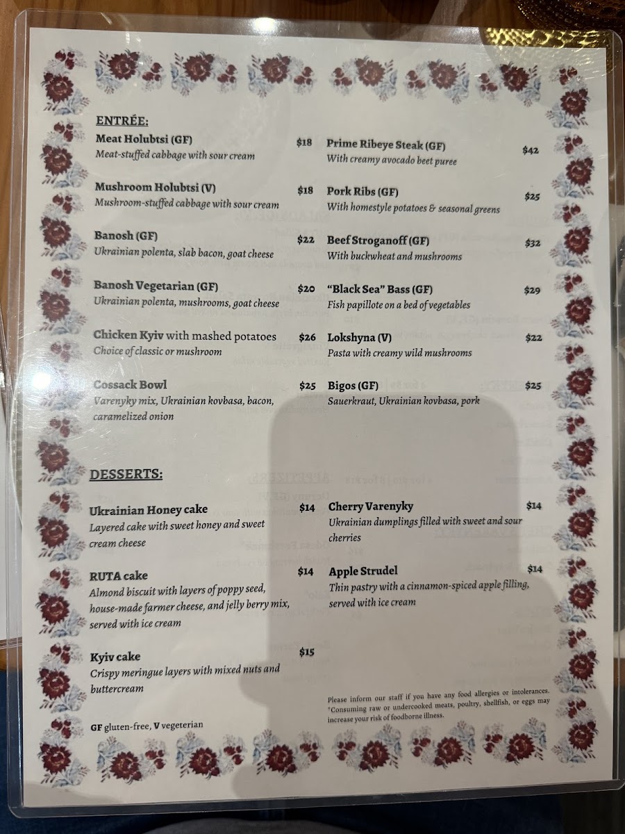 6 varenykiv (3 popato & 3 beef) , Ukrainian kovbasa, bacon, caramelized onion